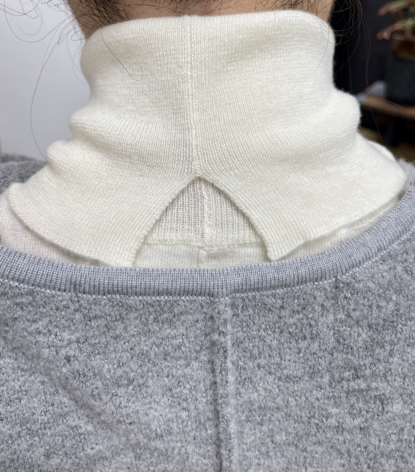 ネックの後ろにはカッティングが。1つ折りでおさまりよく。