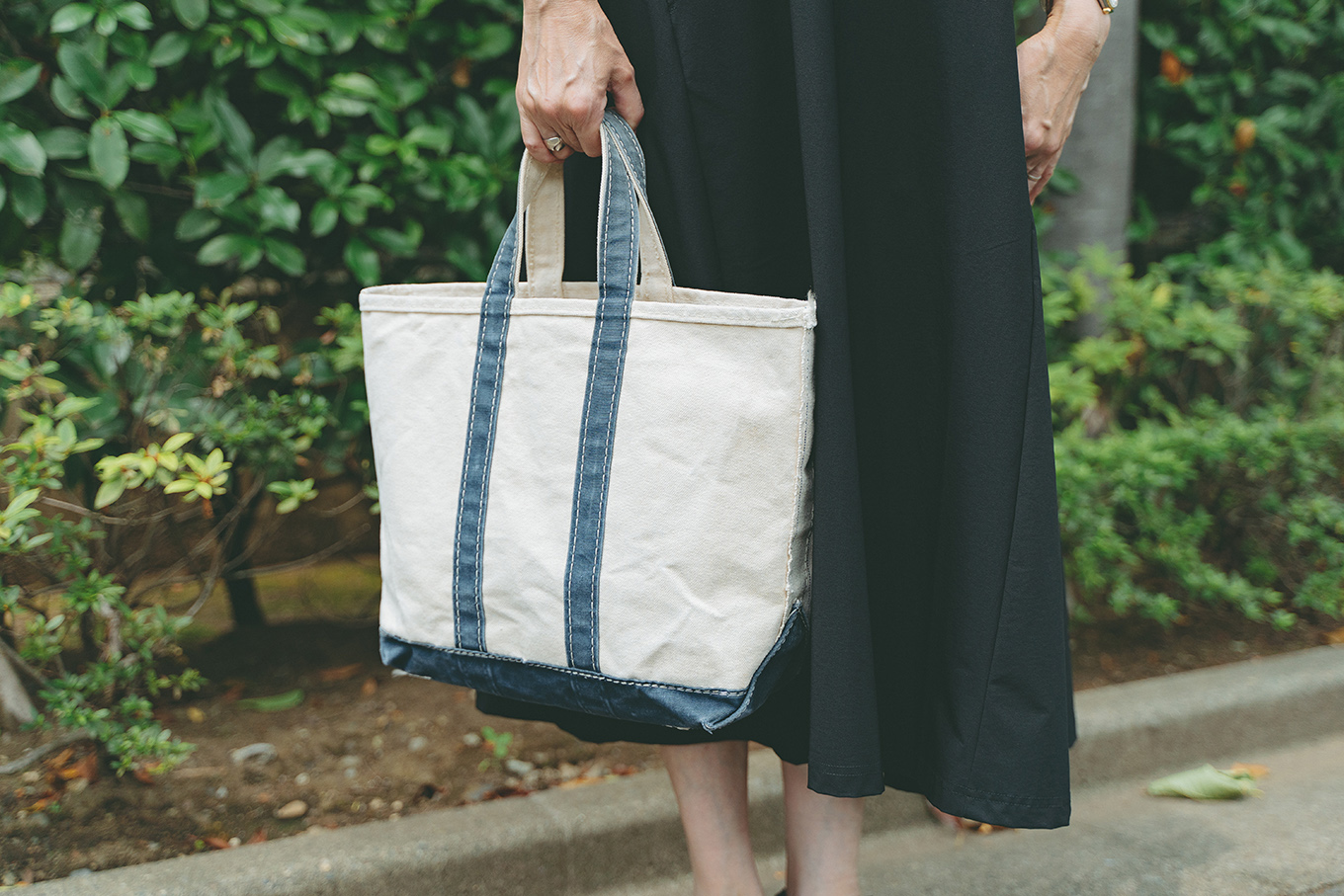 ここでも『L.L.Bean』のトートバックが大活躍。綺麗めコーディネートには、ワンショルダーのタイプを合わせることが多いのだとか。