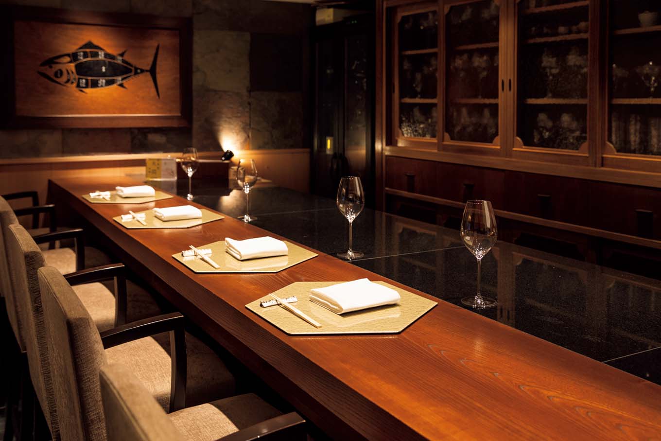 『蕎庵 三たて』シックな店内でゆったりと、マグロと蕎麦のマリアージュを堪能。