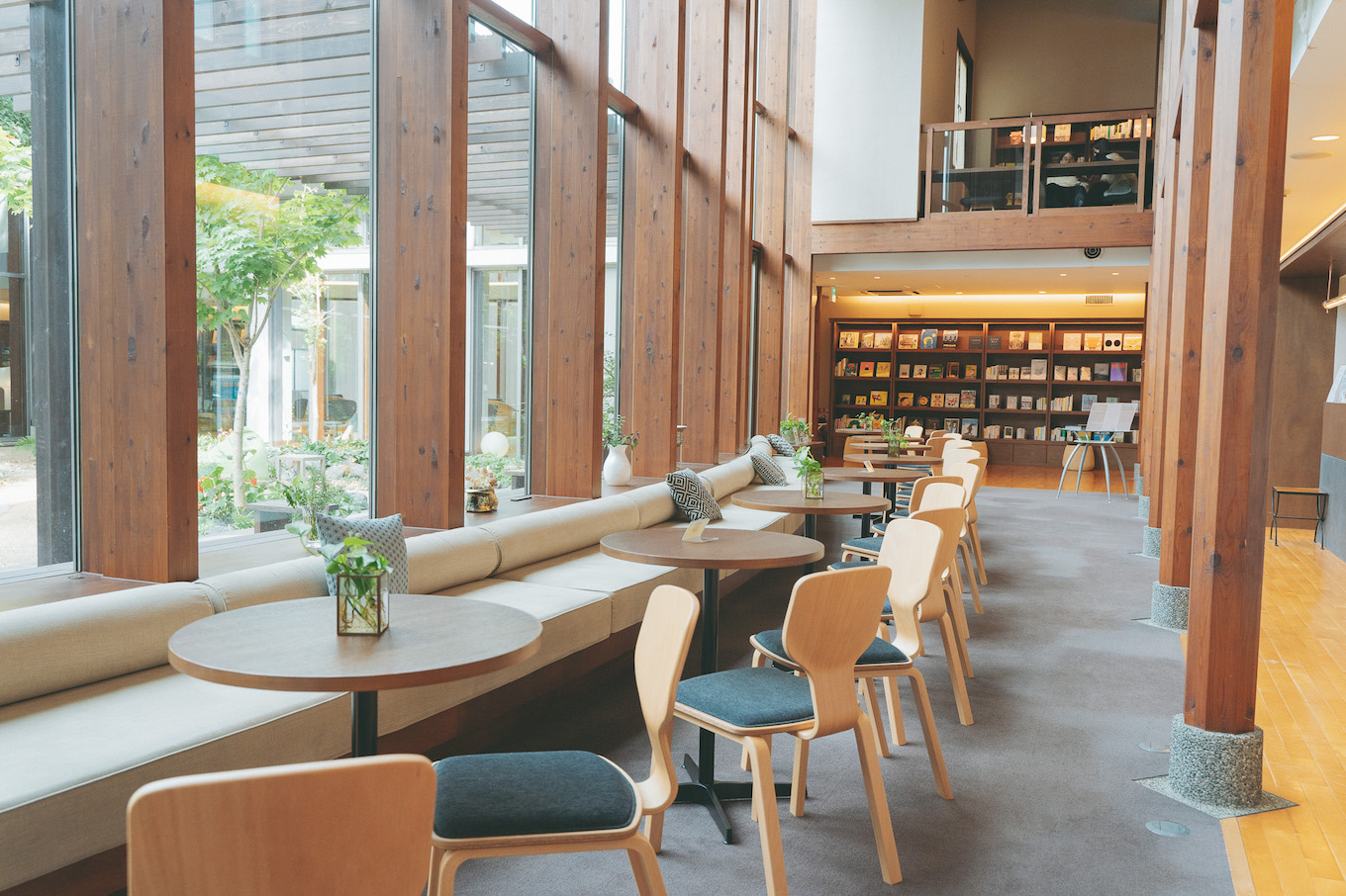 自家源泉を持つ温泉やレストラン、約4000冊の本が並ぶブックラウンジを備えた複合施設。本はすべて新刊本で、自由に手に取り読み購入することができます。湯上がりにソファーで読書する安らぎのひととき、つい時間を忘れてしまいます。