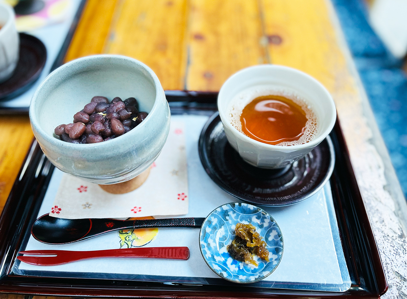 セット以外にもお茶が付いてくるので、参拝や参道巡りで疲れた時、ゆったりとしたひとときを過ごすことができますよ。