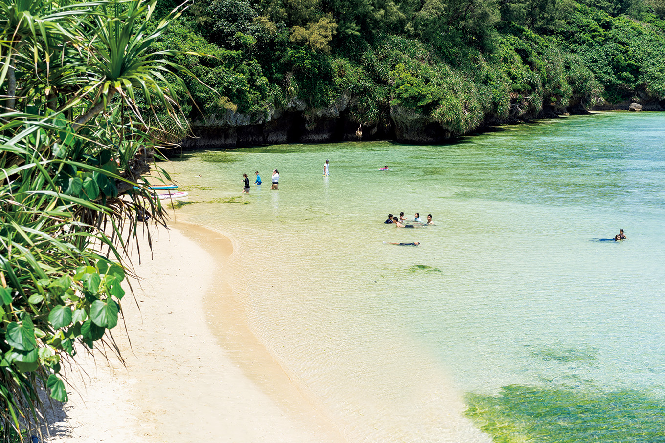 読谷村(よみたんそん)にある『瀬名波ガー』は海浜の岩場から湧き水が流れ出ている。「美しい夕陽が眺められる浜ですが、実は朝がおすすめ」(サユリさん)。戦前は日常的な飲料水や赤ちゃんが生まれた時の産湯に使う貴重な水源だったため、今でも水の恩に感謝する儀式が行われる。