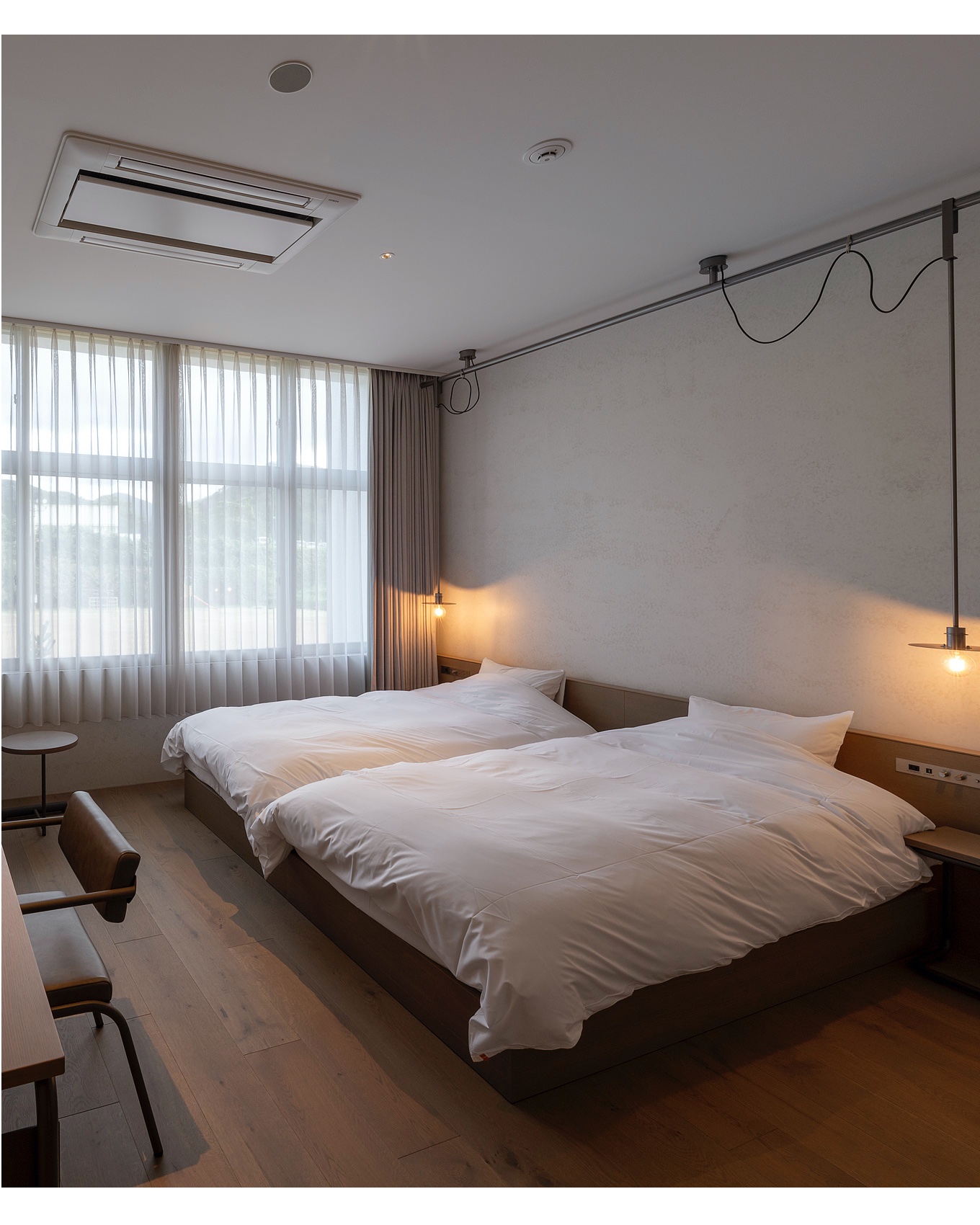 石川県の小松空港から車で約30分の場所にある、小松市観音下町(かながそまち)に佇む『オーベルジュ オーフ』は、町で46年間利用されてきた小学校をオーベルジュとして再構築した施設。今回プレゼントするお部屋は、セミダブルベッドが2台置かれたコンフォート(1組2名様・朝食付き)。客室の窓からは校庭の景色を望むことができるので、懐かしい子供時代に想いを馳せるという、かけがえのない時間が過ごせるかもしれません。