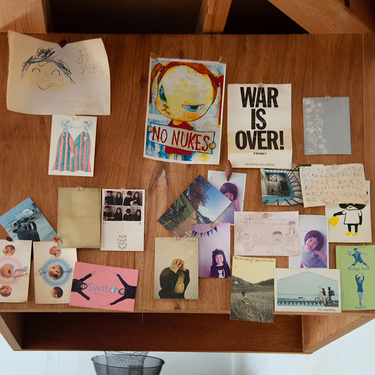 子どもたちの小さい頃の思い出は、ボードに貼ったまま。時々見ては懐かしく思うのだそう。